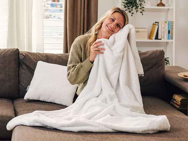 Zestaw Dormeo Warm Hug Lux dodaje każdemu wnętrzu odrobinę wyrafinowania. Jego dwustronny design łączy wyjątkowo miękkie sztuczne futerko królicze z jednej strony oraz jedwabiście gładki aksamitny mikromink z drugiej — tworząc dwa zachwycające wyglądy w jednym.