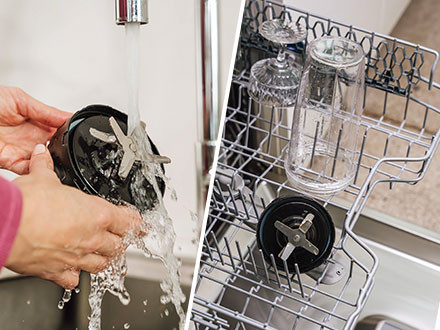 Czyszczenie Primera Nutrilife jest proste — po prostu opłucz ostrza i kubki z użyciem detergentu lub włóż kubki na górną półkę zmywarki.
