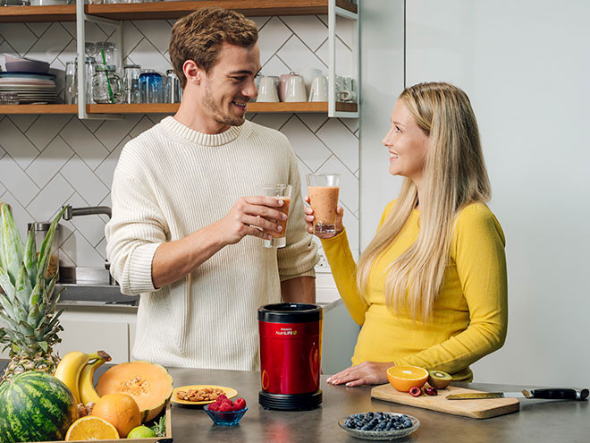 Naciśnij, miksuj, ciesz się. Wystarczy napełnić kubek Primera Nutrilife Red o pojemności 900 ml ulubionymi składnikami, zamocować ostrze ekstrakcyjne i nacisnąć. W kilka sekund otrzymasz idealnie zblendowane, bogate w składniki odżywcze napoje i posiłki — bez przycisków, bez komplikacji. Napełnij, zakręć, ekstrahuj i delektuj się.